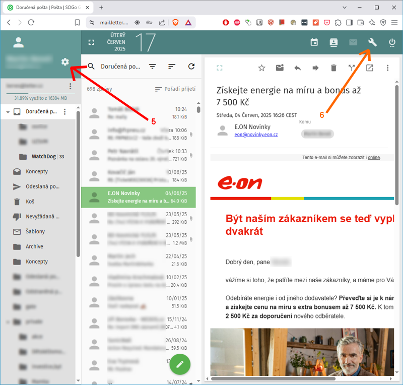 - IMAP účty - umožňuje přidat vaše případné další poštovní účty, nebo účty jiných provozovatelů a sdružit zpracování pošty komplexně do jediného portálu,